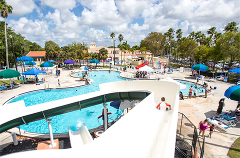 Cypress Water Park features a unique clover shape, non-competitive swimming pool and two water park attractions.